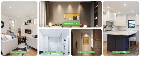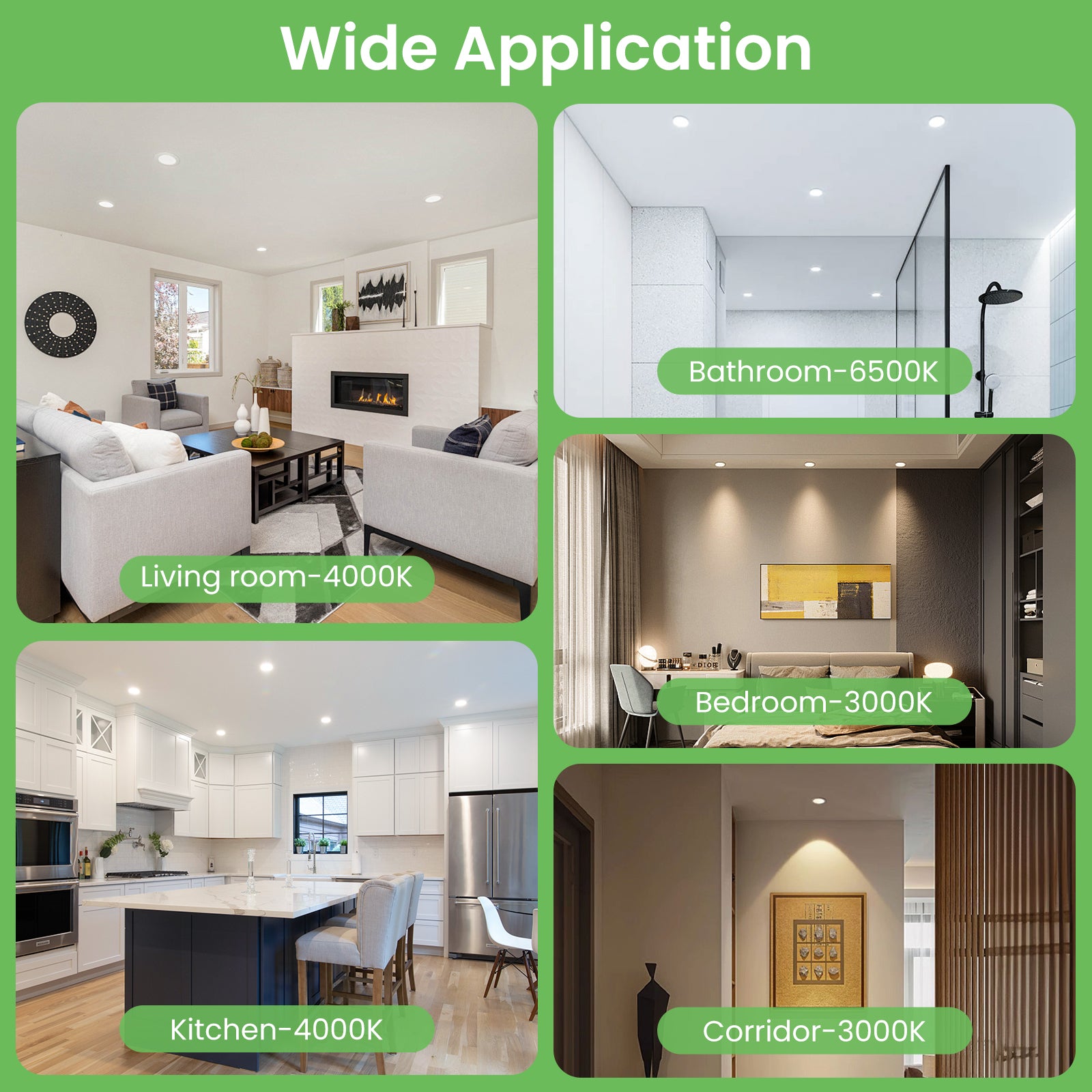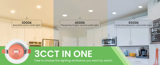💡 【3 Color Temperature Adjustable】 The LED downlights with CCT design, the color temperature can be freely set to 3000K warm white / 4000K neutral white / 6500K cold white. Simply click on the color temperature switch on the back of the downlight to select the most suitable color temperature for your home.
