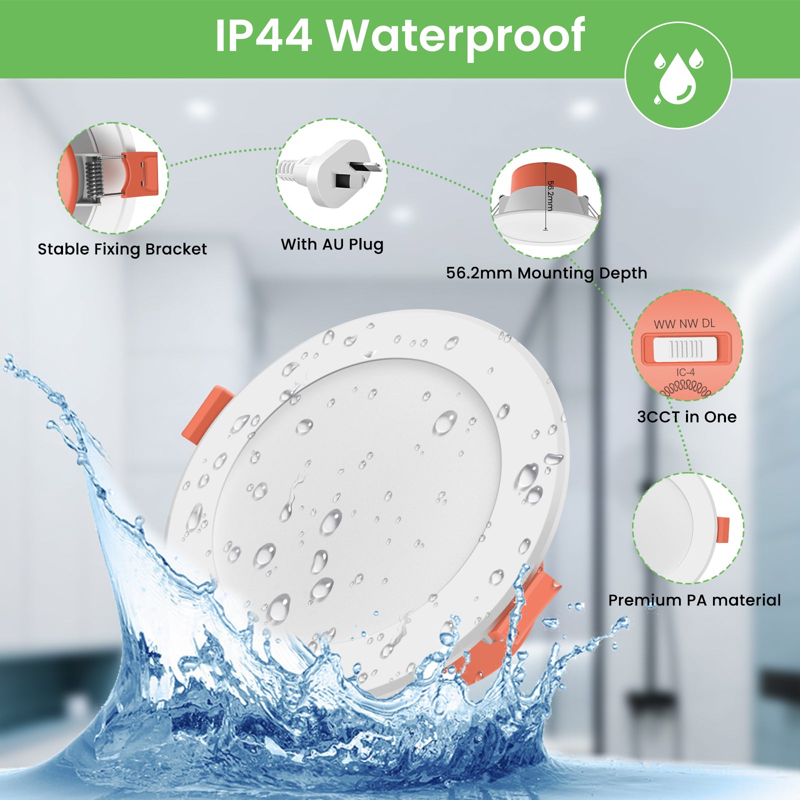 💡【IP44 Bathroom Downlights】 IP44 waterproof recessed led ceiling light prevents water, vapour and dust from entering the interior of the lamp body and can be used in bathrooms, balconies, ceilings under eaves or other wet areas. Note: Use in rain or water is prohibited.