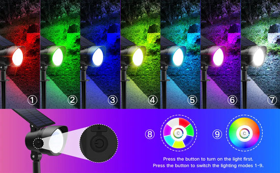 2 Pack RGB 19-LEDs Solar Landscape Spotlights Outdoor Wall Night Light IP65